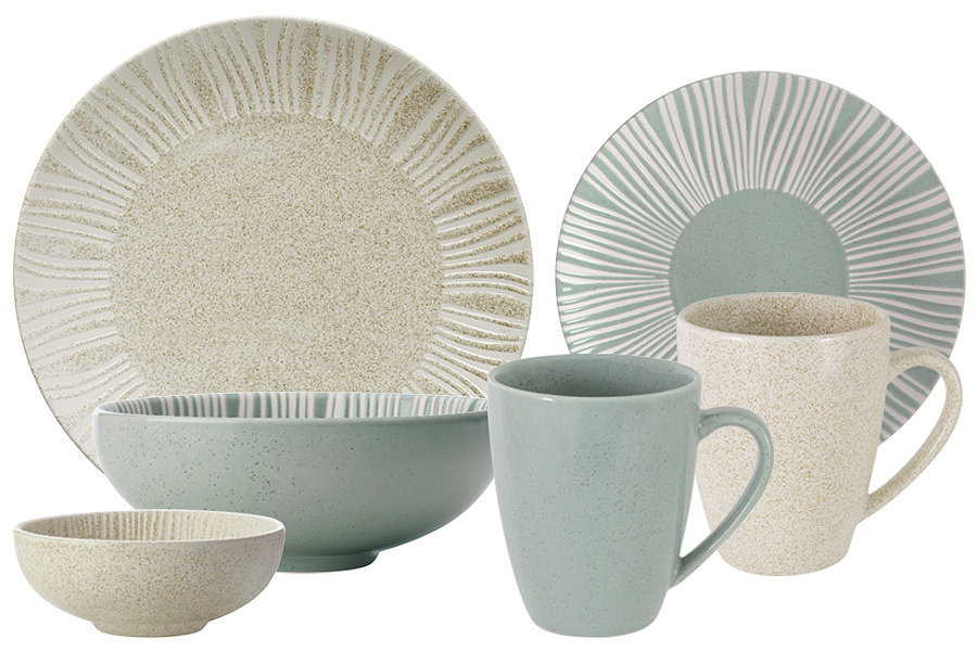 Отличительный декор коллекции – светлые полосы, расходящиеся от центра предметов, напоминают нам о чистых солнечных лучах или цветочных лепестках.