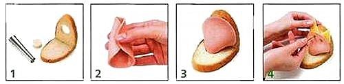 - Варёная колбаса: четыре кусочка;