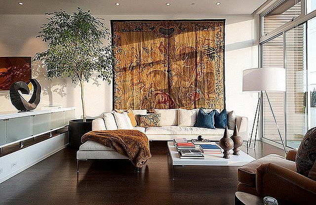 Чаще всего гобелен вешают над изголовьем кровати, диваном или камином.