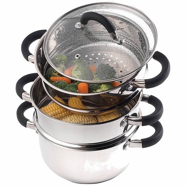 Если у вас уже есть кастрюля, вы можете приобрести только одну вставку-пароварку, которую будете ставить на кастрюлю, заполненную водой, чтобы продукты обдавались паром. Для этого во вставке-пароварке, как уже говорилось ранее, предусмотрено множество отверстий. Кроме того, изделие может иметь одну верхнюю или две боковые ручки. Кстати, последними оснащена каждая секция полного комплекта кастрюли-пароварки. Само же устройство, т.е. его корпусы, должны состоять из качественной пищевой стали. А поскольку специалистов по металлопрокату среди покупателей не так много, убеждаться в качестве изделия приходится при его осмотре. Здесь все просто: никаких вмятин, царапин, ржавчин, неприятных запахов и т.д. Ну и, конечно, нужно выбирать модели призванных производителей – BergHOFF, Rondell и др.