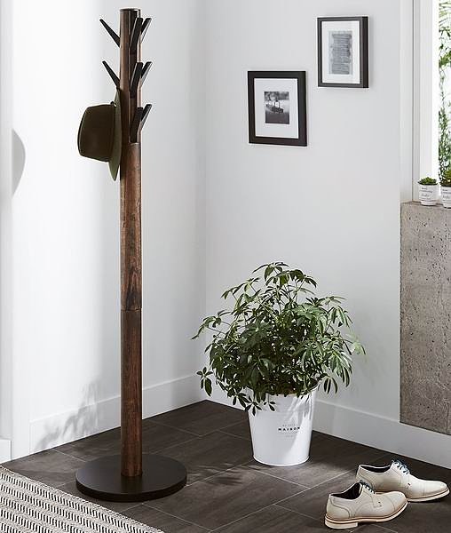 Чаще всего она выполнена в виде стойки на устойчивой платформе, с крюками, на которые вешают вещи и головные уборы. Подходит для людей, не терпящих постоянства, а также в помещениях, где ограничена область прохода. Вешалка легко передвигается, но стоит обращать внимание на количество вещей, которые вы будете вешать, так как обилие одежды может перевернуть всю конструкцию. Напольная вешалка лучше всего подойдет в помещение с малым количеством обитателей. Материал для изготовления таких вешалок должен быть прочным, но при этом не слишком тяжелым, так как важная функция такой вешалки – легкое передвижение с места на место. Некоторые модели оснащены роликами или колесиками для удобства перемещения.