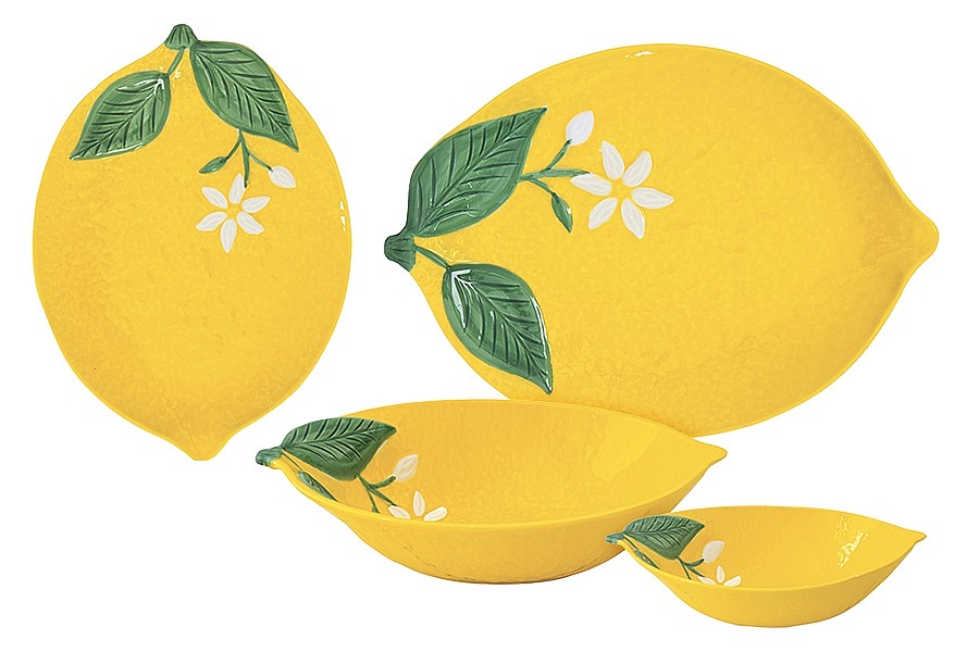 Контрастные жёлтые блюда и салатники добавят живости и солнечности оформлению стола, а также могут использоваться отдельно.