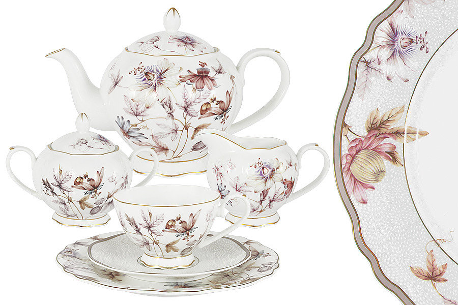 Удивительной красоты целебные цветы пассифлоры успокаивают и дарят гармонию. Мягкий декор с золотой обводкой создан для времяпровождения в кругу самых близких и дорогих людей, которые понимают Вас с полуслова.