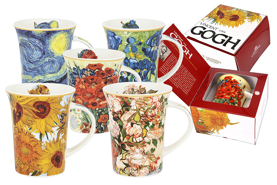 Кружки из фарфора (самой популярной формы с широким верхом) позволяют в полной мере насладится не только любимым напитком, но и репродукциями полотен знаменитых художников: