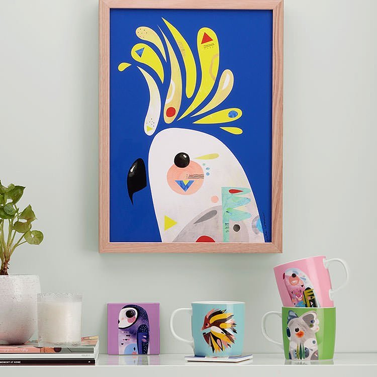 Новинки от австралийского художника Пита Кромера: фарфоровые кружки ярких цветов с изображениями коалы, лазурного зимородка и попугая.