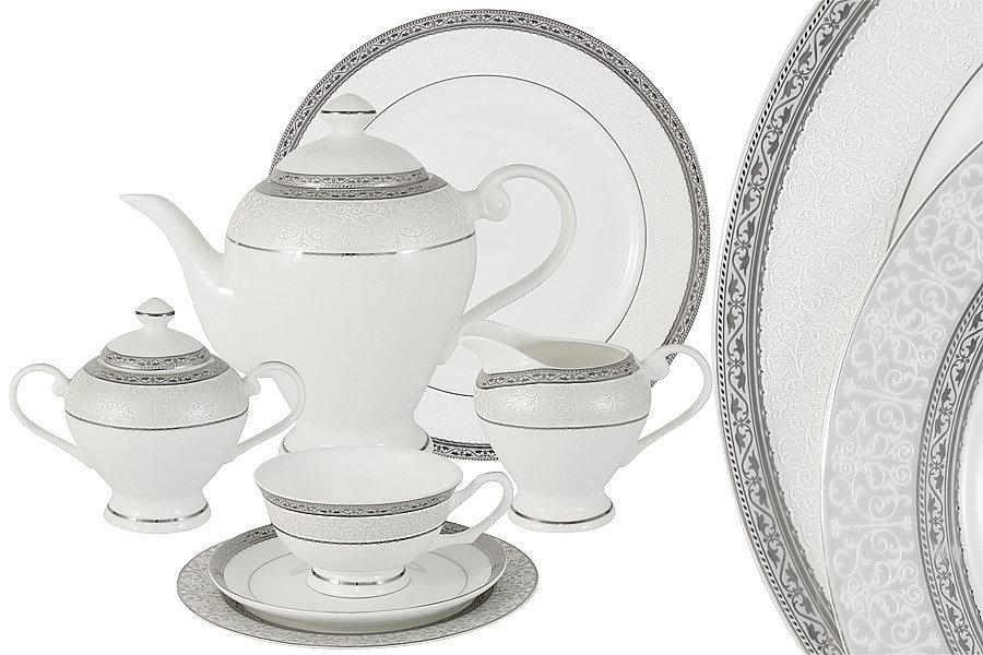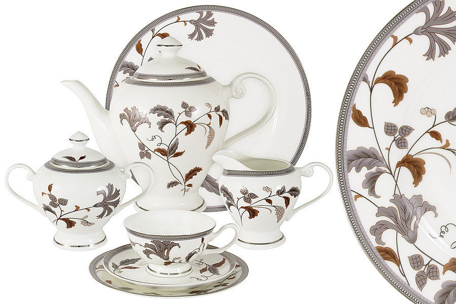 Серия «Серебряный лист» интригует и завораживает красотой растительного декора на белоснежном костяном фарфоре.