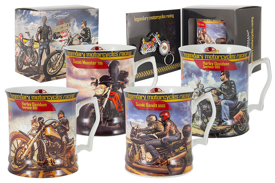 Большой объем, удобная ручка, продуманный до мельчайших деталей рисунок с изображением знаковых моделей мотоциклов плюс дополнительный бонус в виде брелока – ни один представитель мужского пола не устоит перед таким подарком...