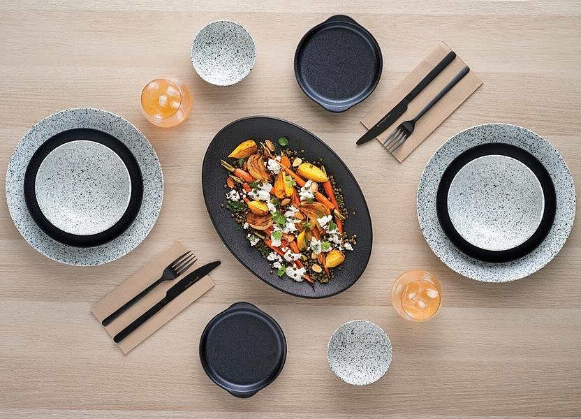 Черная и пепельная коллекции идеально сочетается между собой: можно сервировать стол двумя цветами и монохромно только в темных или светлых тонах.