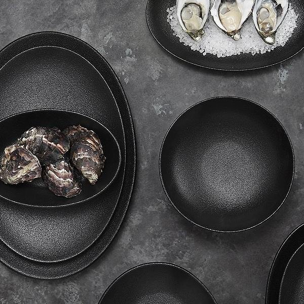 Посуда черного цвета, благодаря уникальной текстурированной глазури, напоминает черную икру. Посуда пепельного цвета с темными вкраплениями имеет гладкую фактуру.